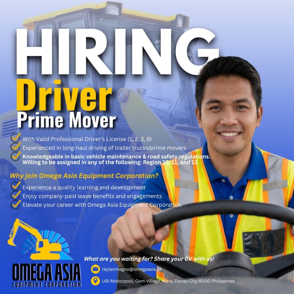 • With valid Professional Driver’s License (1, 2, 3, 8)